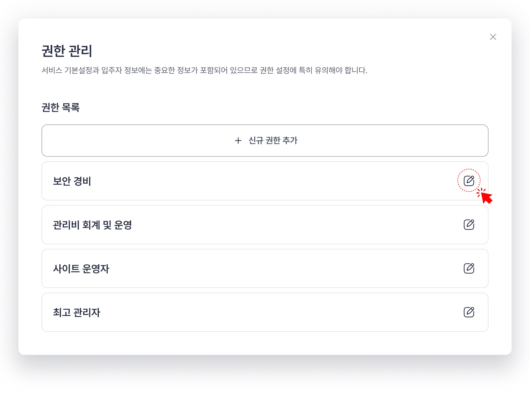 권한 목록에 있는 [수정아이콘] 버튼을 클릭합니다.