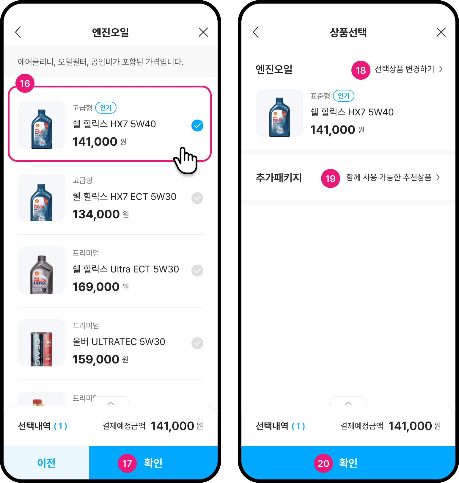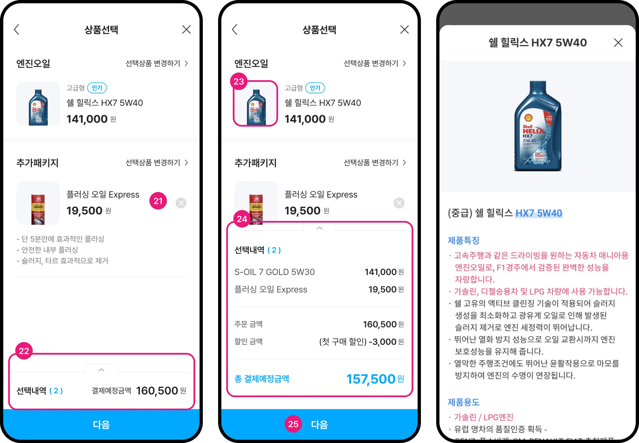 펼쳐진 선택내역에서는 선택한 상품과 가격, 결제예정금액을 볼 수 있습니다.