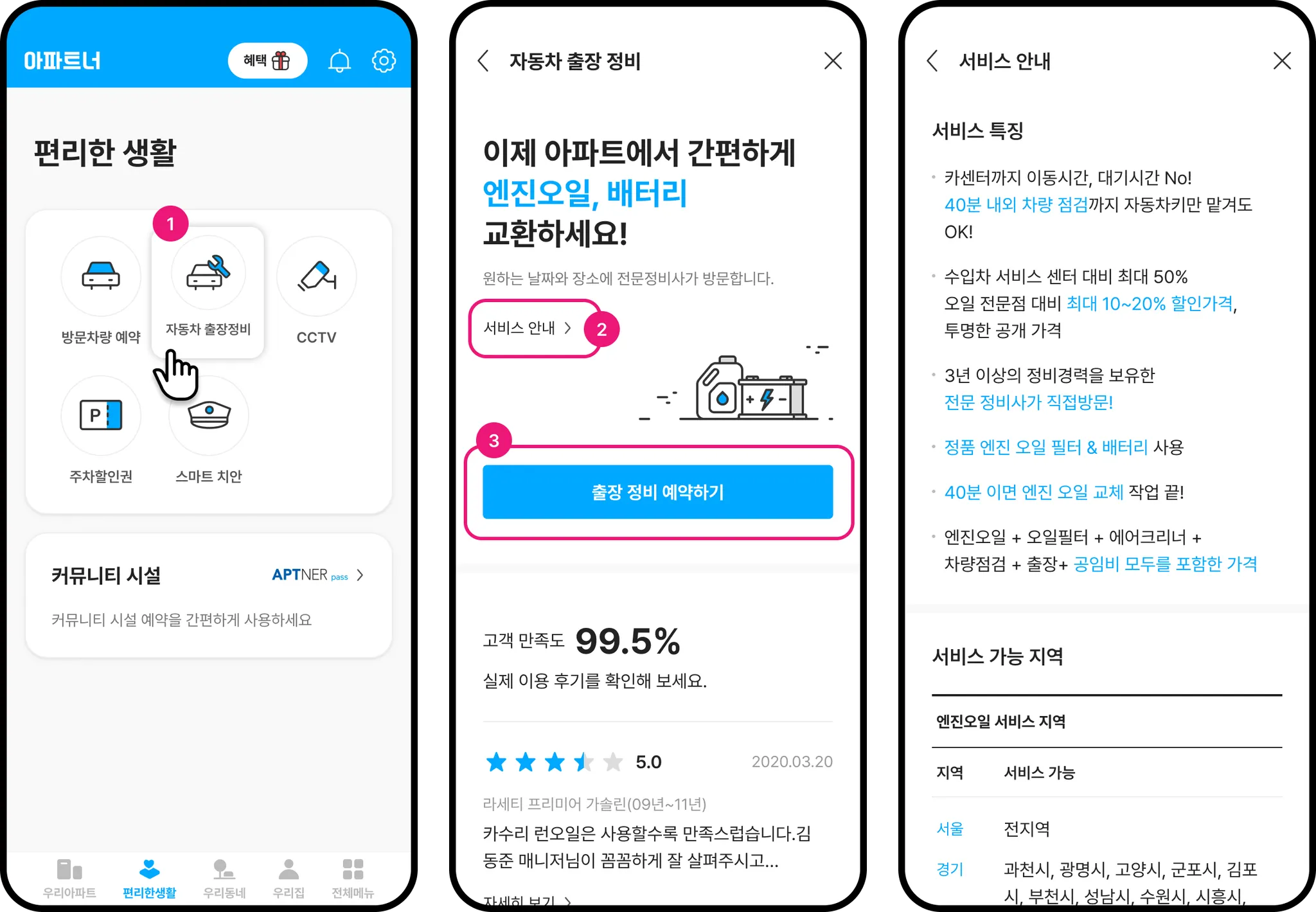 [출장 정비 예약하기]를 눌러 예약을 진행합니다.