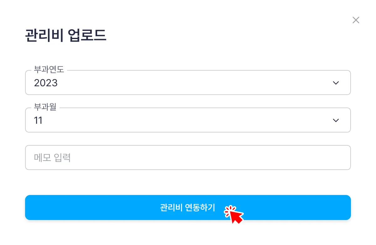 연동형 : 부과연월을 선택하고 [관리비 연동하기]를 클릭하여 업로드 합니다.