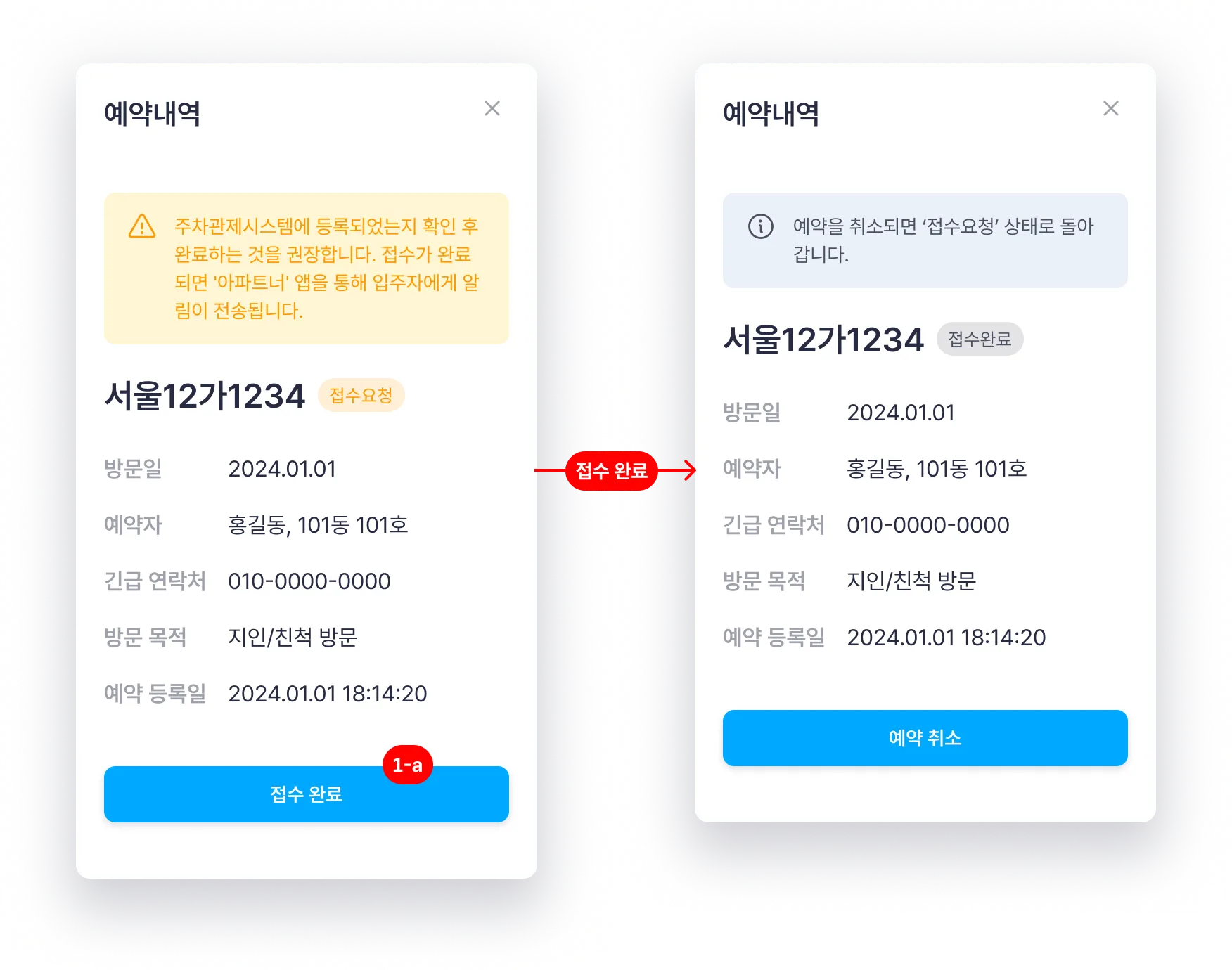 19. 2. 3. 3. 관리사무소에서 직접 예약하고 [접수완료]클릭한 경우