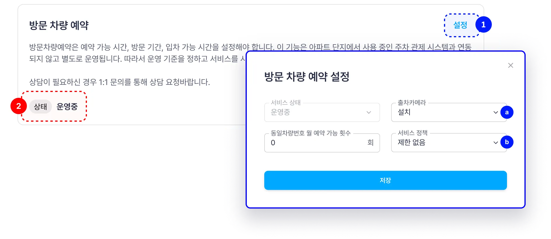 주차관제 시스템만 사용하는 단지는 방문 차량 예약 서비스 설정 불가합니다.
