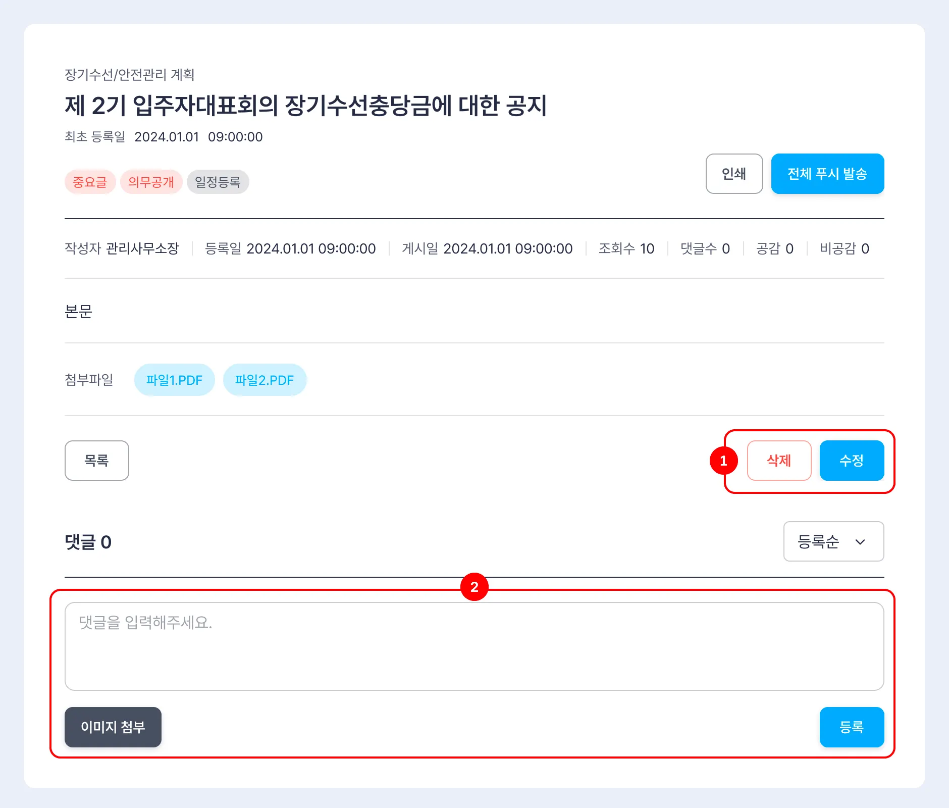2. 3. 공지사항 게시글 수정, 삭제 및 댓글 작성 방법